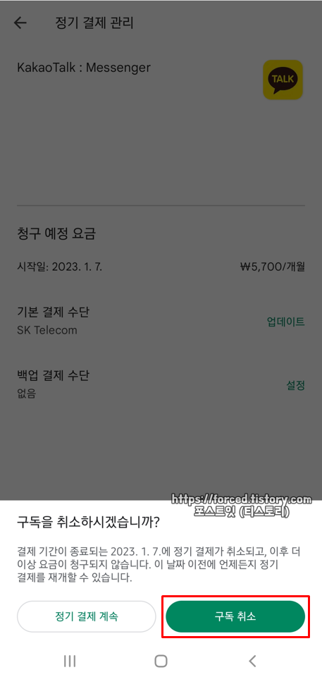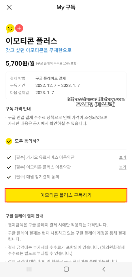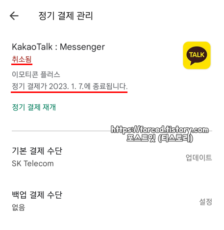 이모티콘 플러스 요금 자동결제 해지방법 (구독 취소)