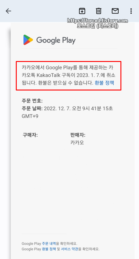 환불 요청은 구글 플레이 스토어 환불 신청 사이트 또는 카카오톡 고객센터를 통해 가능한데요.