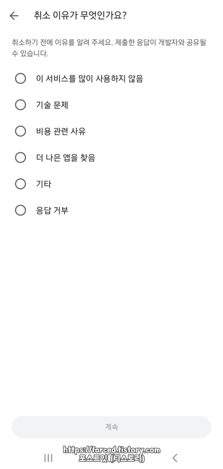구독 취소(자동 결제 해지) 이유를 선택해줍니다.