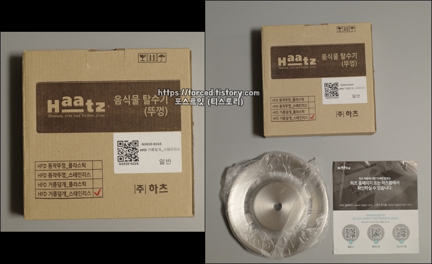 구매 후 며칠 뒤 택배로 받은 하츠 음식물 탈수기(탈수통)입니다. 스테인리스 제품입니다.