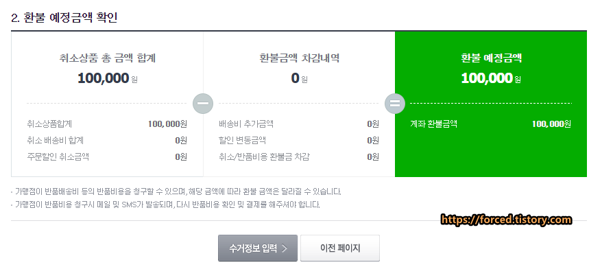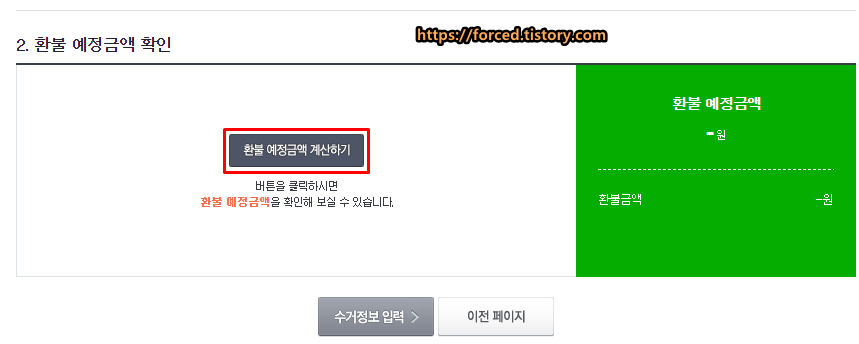 환불 예정금액 계산하기 버튼을 눌러줍니다.