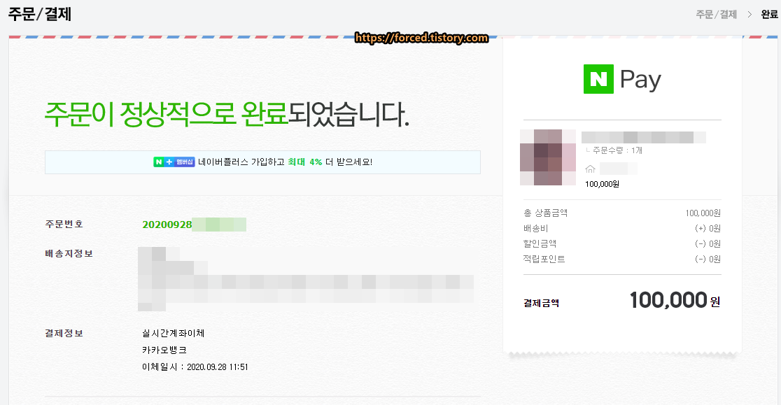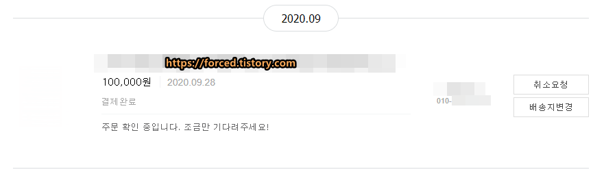안전거래 주문 완료 직후, 네이버페이 주문 내역을 확인해보면 이렇게 '결제완료'로 표시됩니다.