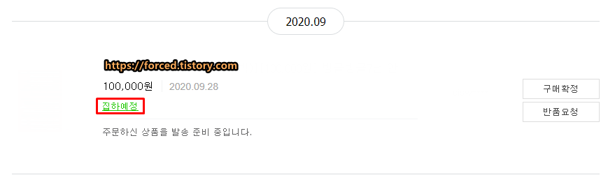 판매자가 택배를 보내고, 운송장 번호를 입력하면 '집하예정'이라고 표시되는데요. 집하예정 부분을 클릭하면 운송장 번호와 배송 진행 내역을 확인할 수 있습니다.