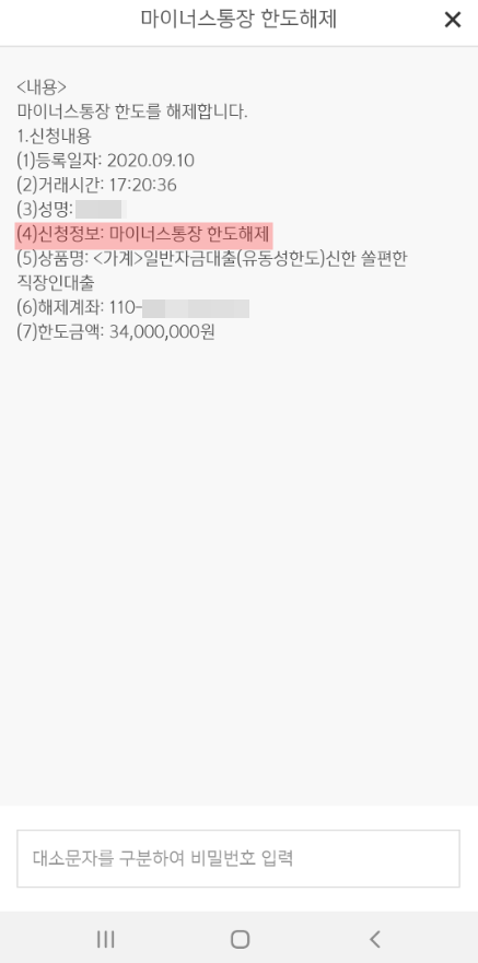공인인증서 인증을 끝으로 마이너스 통장 해지가 완료되었습니다. 이제부턴 돈도 아껴 쓰고, 저금도 많이 해야겠어요.