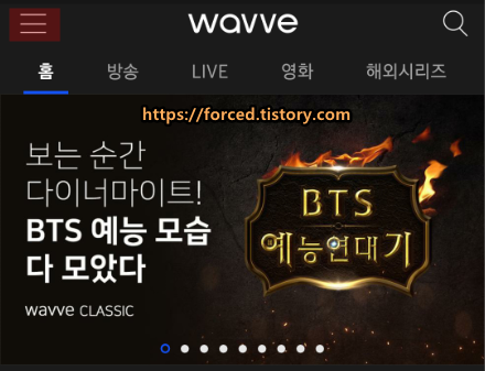 매월 유료 이용권을 결제하면 대한민국 예능, 드라마, 영화(최신 영화는 유료) 등을 무료로 다시 보기 할 수 있는 '웨이브(wavve)'. 웨이브는 PC 또는 모바일 앱을 통해 이용할 수 있다. 최근에는 KBO 프로야구 라이브 시청 또는 하이라이트 다시 보기 할 수 있도록 업데이트되었다.