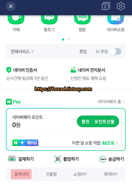 이어서 N pay 아래에 있는 결제내역을 눌러줍니다.