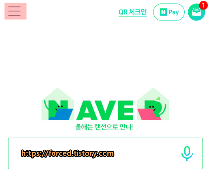 먼저 네이버 앱을 실행시켜줍니다. 만약 네이버 앱 설치 및 실행이 싫다면 모바일 웹 브라우저로 진행해도 됩니다.