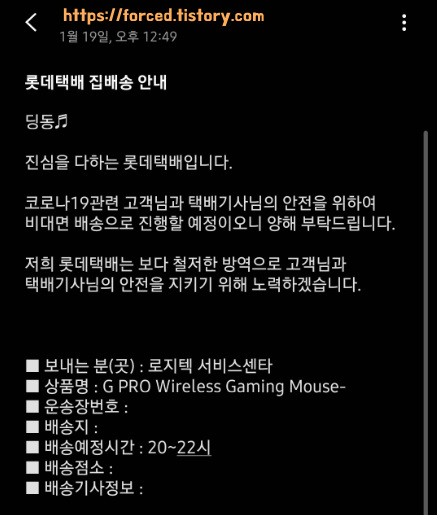 마우스 A/S 접수 및 택배 발송을 완료하고 10일 정도 지났을 무렵, A/S 완료된 마우스가 택배로 도착했습니다.