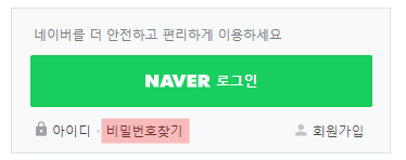 네이버 임시 비밀번호 발급을 위해 먼저 네이버 로그인 아래에 보이는 '비밀번호찾기'를 눌러줍니다.