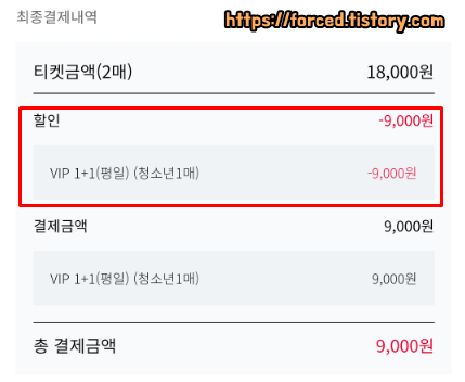 청소년 2매를 예매할 때는 청소년 1매 요금이 할인됩니다.