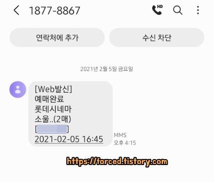 영화 예매번호는 이렇게 문자로도 안내를 해줍니다.