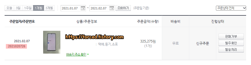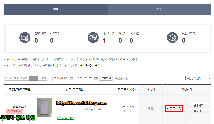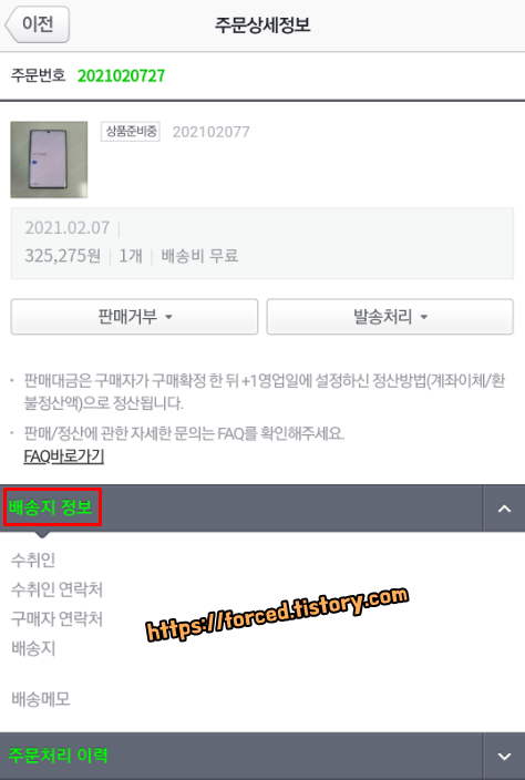 여기 배송지 정보에 구매자의 주소와 휴대폰 번호가 상세히 적혀있는데요. 이 주소로 물건을 보내시면 됩니다. 택배 발송은 발주 확인일로부터 3일 이내에 해야 합니다.