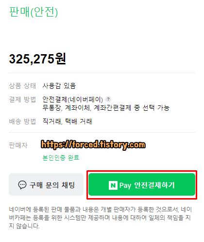 참고로 구매자는 판매글에 보이는 'Npay 안전결제하기'를 통해 물건 값을 지불합니다.