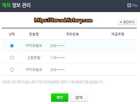 판매 대금을 처음에 설정했던 계좌 말고, 다른 계좌로 받고 싶다면 여기서 입금 계좌를 선택하시면 됩니다. 계좌 정보를 추가하고 싶다면 우측 상단에 있는 계좌추가 버튼을 눌러 계좌를 추가해주면 됩니다.