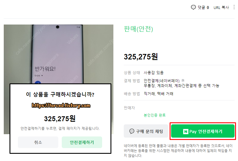 참고로 구매자는 판매글에 보이는 'Npay 안전결제하기'를 통해 물건 값을 지불합니다.