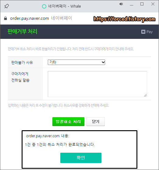 참고로 판매자가 판매 거부 신청을 하면 거래는 즉시 취소됩니다. (구매자 의사와는 상관없이 바로 취소됨)