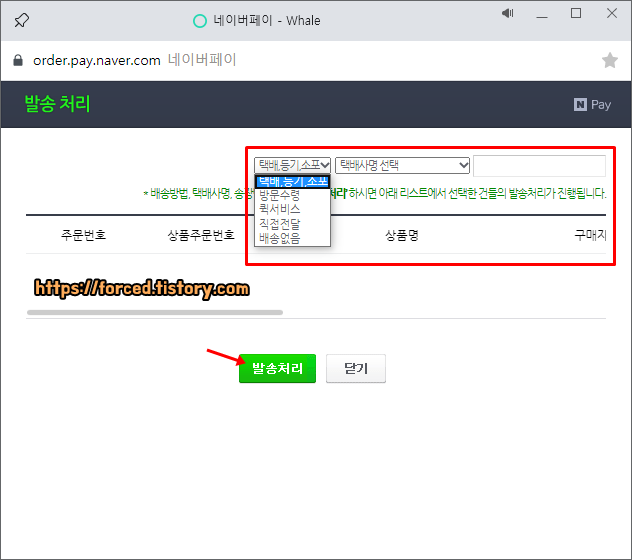 3. 물건 값이 지불됐다면 판매자는 물건을 배송한다. (배송 후, 배송 정보를 네이버 페이에 등록함)