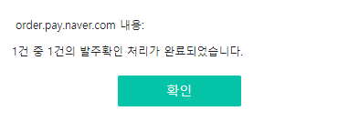 입금 상태가 '입금완료'로 바뀌면 진행 상태에 '발주확인'이라는 버튼이 보일 것입니다. 이 버튼을 눌러줍니다.