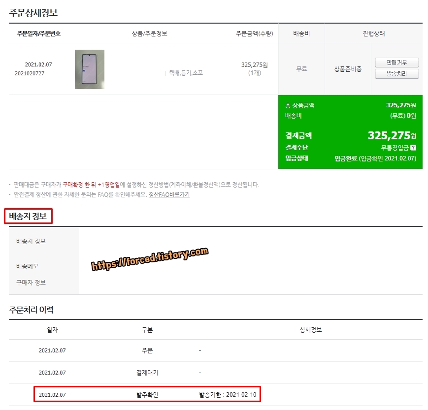 여기 배송지 정보에 구매자의 주소와 휴대폰 번호가 상세히 적혀있는데요. 이 주소로 물건을 보내시면 됩니다. 택배 발송은 발주 확인일로부터 3일 이내에 해야 합니다.