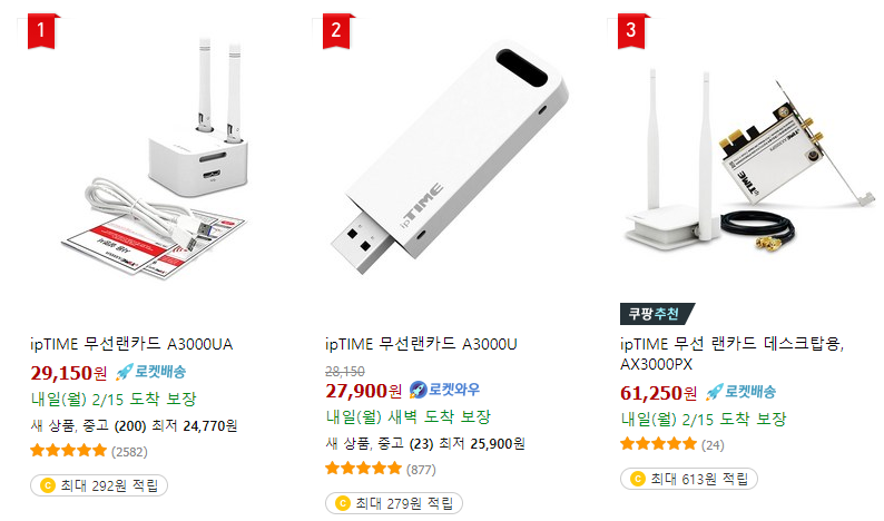 USB 무선랜카드는 ipTIME 제품 기준으로 가격이 2~3만 원 정도 하며, 사용 방식은 크게 3가지로 나눠져 있습니다.