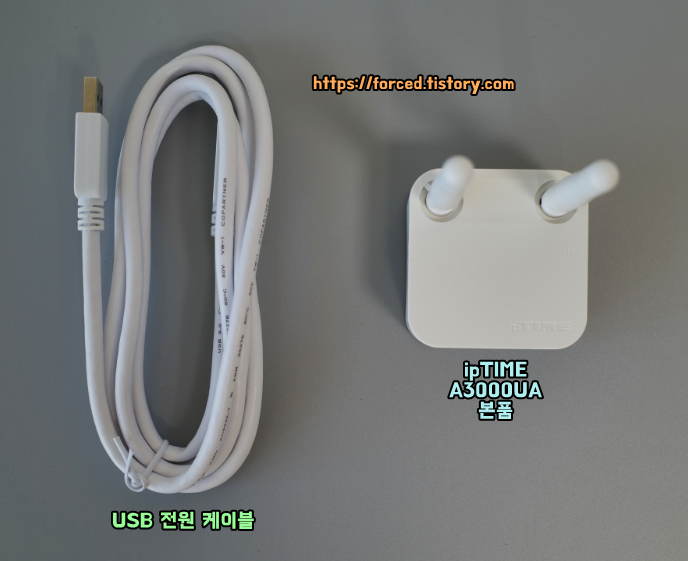 구성품은 USB 전원 케이블(1M 정도의 길이)과 IpTIME A3000UA 본품입니다.