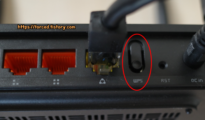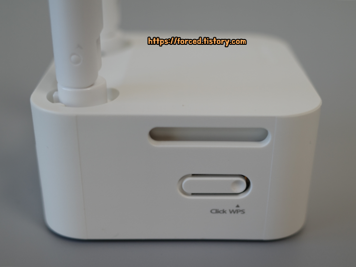 전원 포트 반대편에는 WPS 버튼이 있습니다. 와이파이를 암호 입력 없이 바로 연결하는 기능입니다.