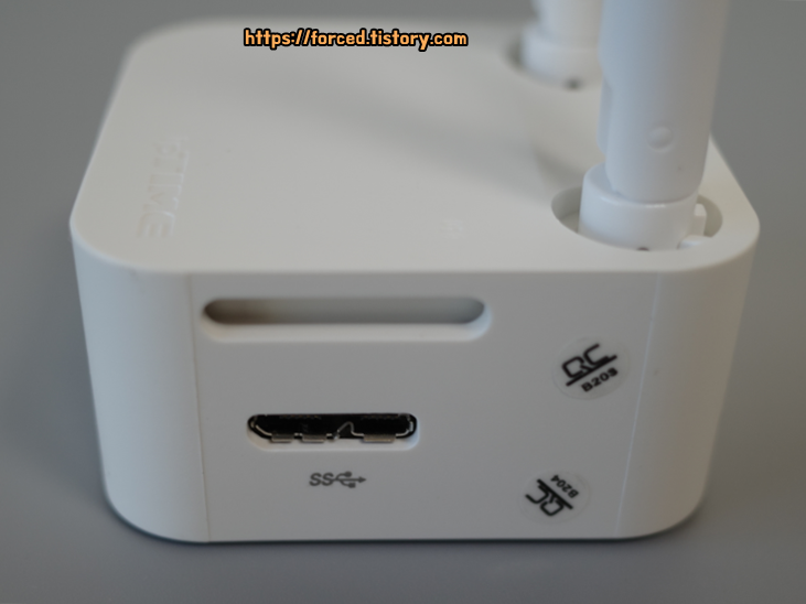 기기 우측에는 이렇게 USB 3.0 인터페이스를 사용하는 전원 포트가 있습니다.