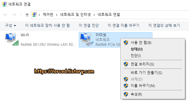 순수히 와이파이 망만 이용하고 싶다면 네트워크 연결에서 이더넷을 '사용 안 함'으로 바꿔주시면 됩니다. 반대로 유선랜만 사용하고 싶다면 Wi-Fi를 사용 안 함으로 바꾸면 되겠죠?