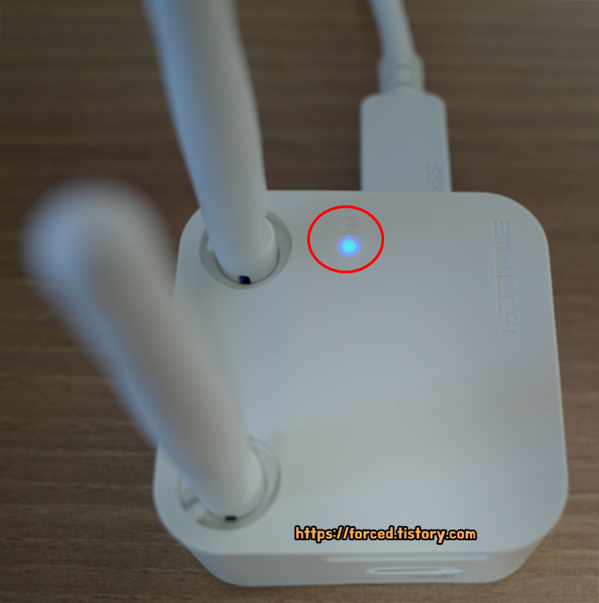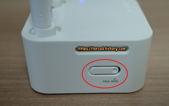 공유기가 무선랜 카드를 찾는 상태가 되었을 때, USB 무선 랜카드에서 'Click WPS' 버튼을 눌러주면 와이파이가 연결될 것입니다. 그리고 WPS로 무선랜카드와 공유기 연결이 완료되면 공유기의 LED가 깜빡거릴 것입니다.