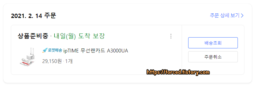 쿠팡 로켓 배송으로 주문해 다음날 받은 ipTIME A3000UA.