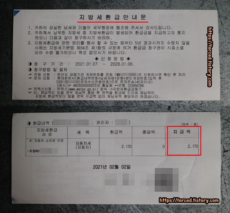 1. 전화 신청 (지방세 환급 안내문에 전화번호가 적혀있음)