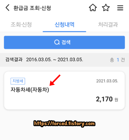 환급 신청 이후, 신청 내역도 확인할 수 있습니다.