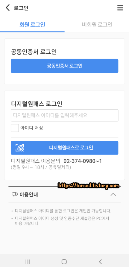 위택스는 공동인증서 로그인 또는 디지털패스로 로그인이 가능합니다.