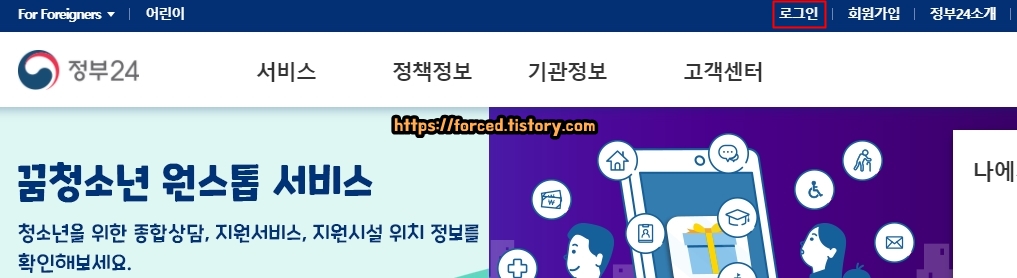 로그인은 공동인증서로 하는 것이 제일 간편합니다.