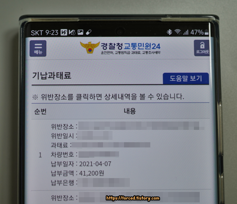 미납 과태료를 확인해보니, 저는 속도위반(20km 이하)으로 적발이 되었었네요..