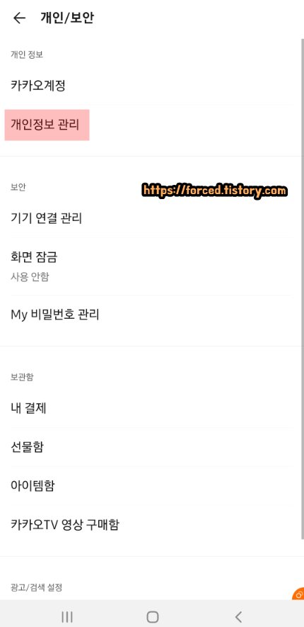 개인정보 관리에 있는 "카카오톡 탈퇴"를 눌러줍니다.