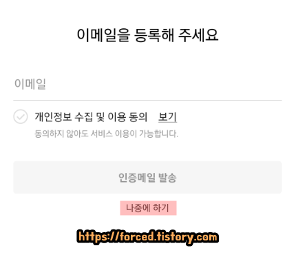 이메일 등록 단계입니다. 참고로 이메일 등록은 필수가 아닙니다. 그렇기 때문에 여기서 "나중에 하기"를 눌러 이 단계를 건너뛰어도 됩니다.