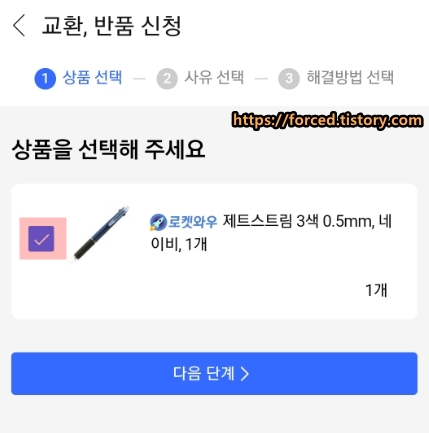 상품을 선택한 다음, 다음 단계 버튼을 눌러줍니다.