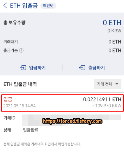 참고로 이더리움 최소 입금 금액은 0.0015 ETH입니다.