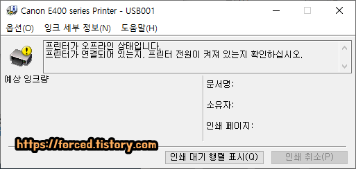 참고로 프린터 잉크 잔량 확인은 프린터가 온라인(전원 ON) 상태일 때만 가능합니다. (프린터가 꺼져있는 상태라면 잉크 잔량 확인 불가능)