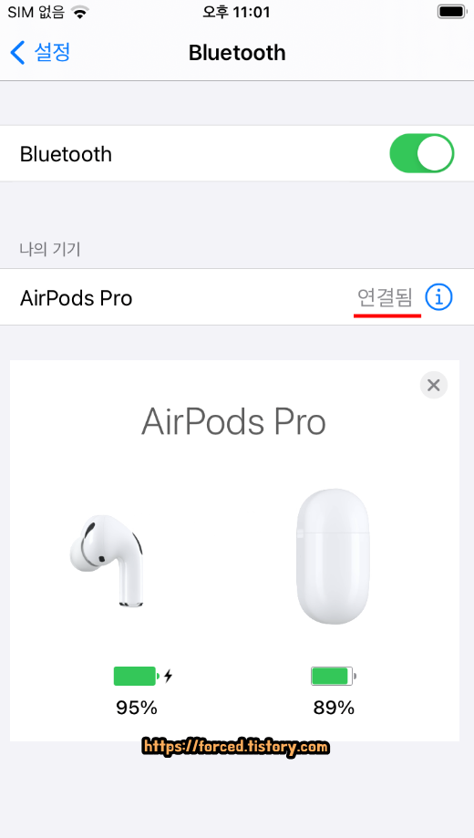 참고로 꼭 노래를 들을 필요는 없습니다. 잠시 유튜브를 보거나 해도 됩니다. 3분에서 5분 정도만 에어팟 프로 연결 상태를 유지해주세요.