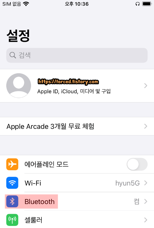 여기서 'Bluetooth(블루투스)'를 눌러줍니다.