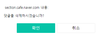 '댓글을 삭제하시겠습니까?' 확인 창에서 확인 버튼을 누르면 네이버 카페에 작성했던 댓글은 즉시 삭제 처리가 됩니다.