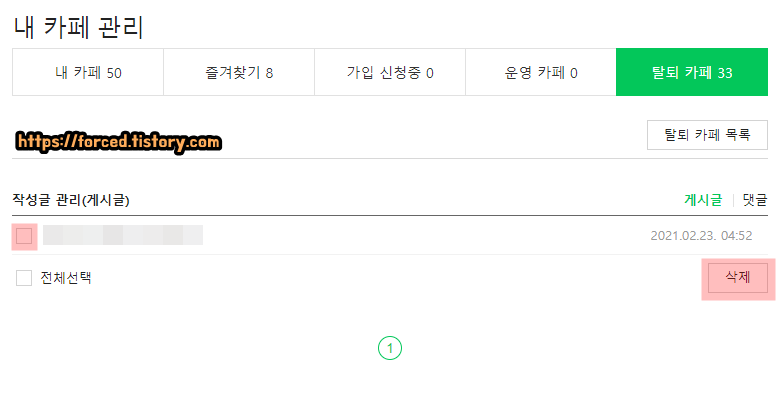 네이버카페 탈퇴 후 게시글 및 댓글 삭제방법