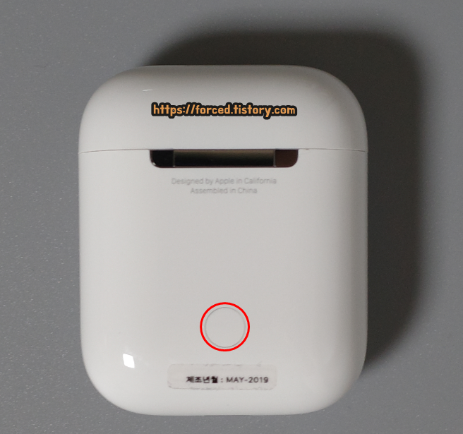 이제 에어팟 페어링 초기화를 해줄 차례입니다. 방법은 간단합니다. 기기 뒷면에 보이는 동그란 버튼(페어링 기능)을 10초에서 20초 정도 꾹 눌러줍니다. 그 정도 눌러주면 흰색이었던 상태 표시등이 잠시 주황 불빛으로 바뀌면서 몇 번 깜빡깜빡할 것입니다. 깜빡거리는 주황 불빛을 내 두 눈으로 확인했다면 페어링 초기화는 완료된 것입니다.