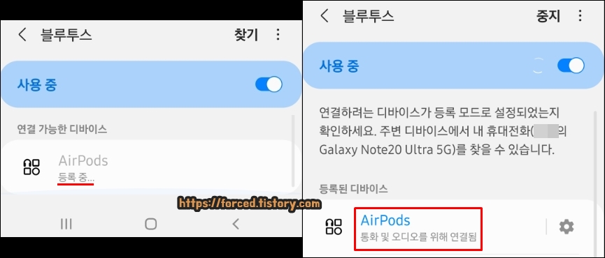 2. 블루투스 연결 시 에어팟에서 연결음(띠링 소리)이 나옴