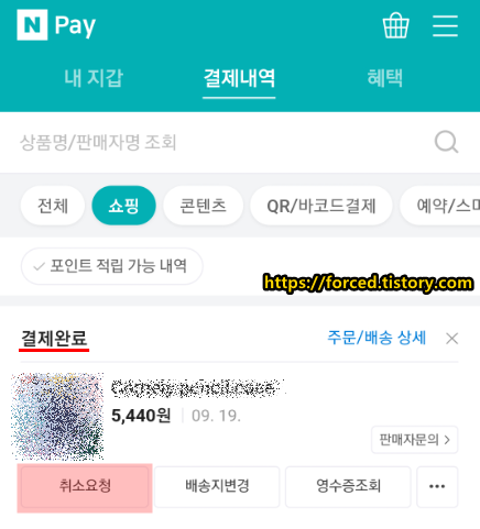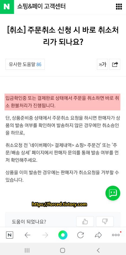 네이버페이 주문 취소 시 즉시 환불 가능 상태