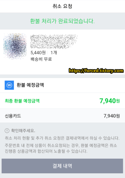 카드 결제 취소 처리는 3~5 영업일 정도 걸린다고 그랬는데. 저는 주문 취소 즉시 카드 결제 취소 처리가 되었네요. 주문 취소 즉시 카드 결제 취소 처리가 되어서 좋았네요.!!