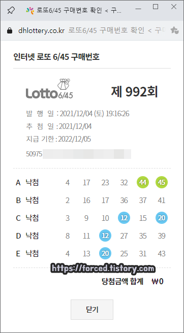 위 사진은 로또 구매 정보를 확인했을 때 모습입니다.