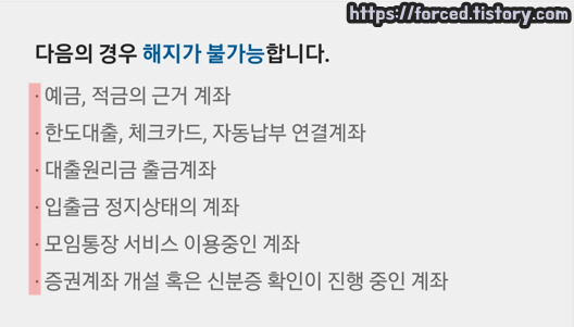 계좌 해지가 불가능한 경우